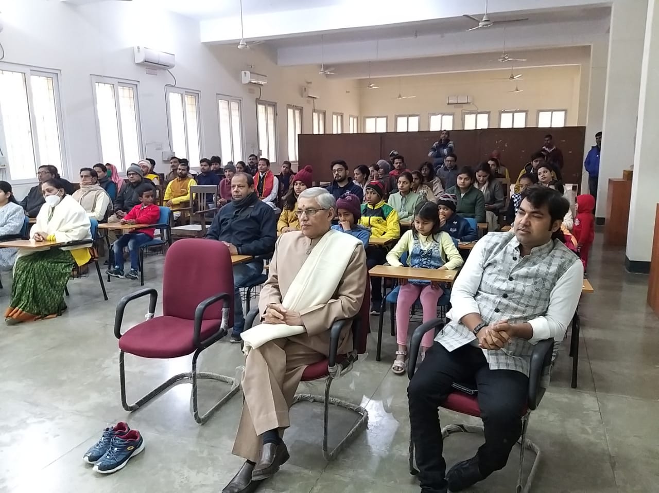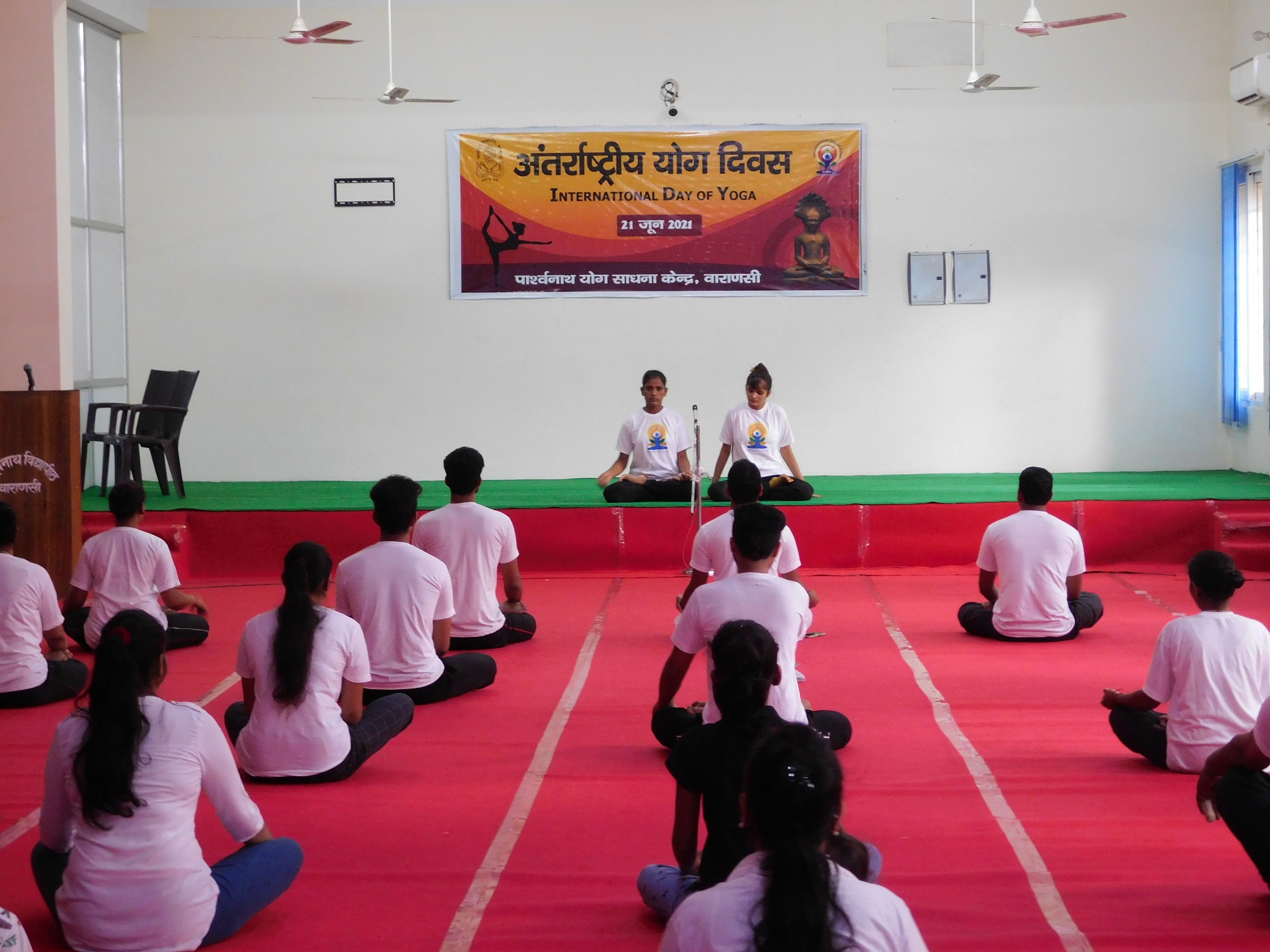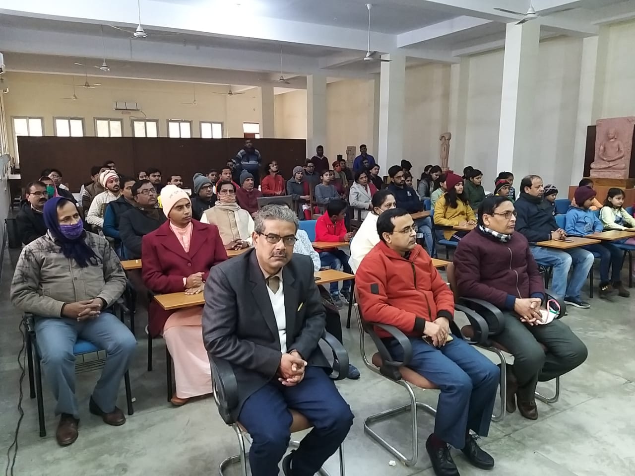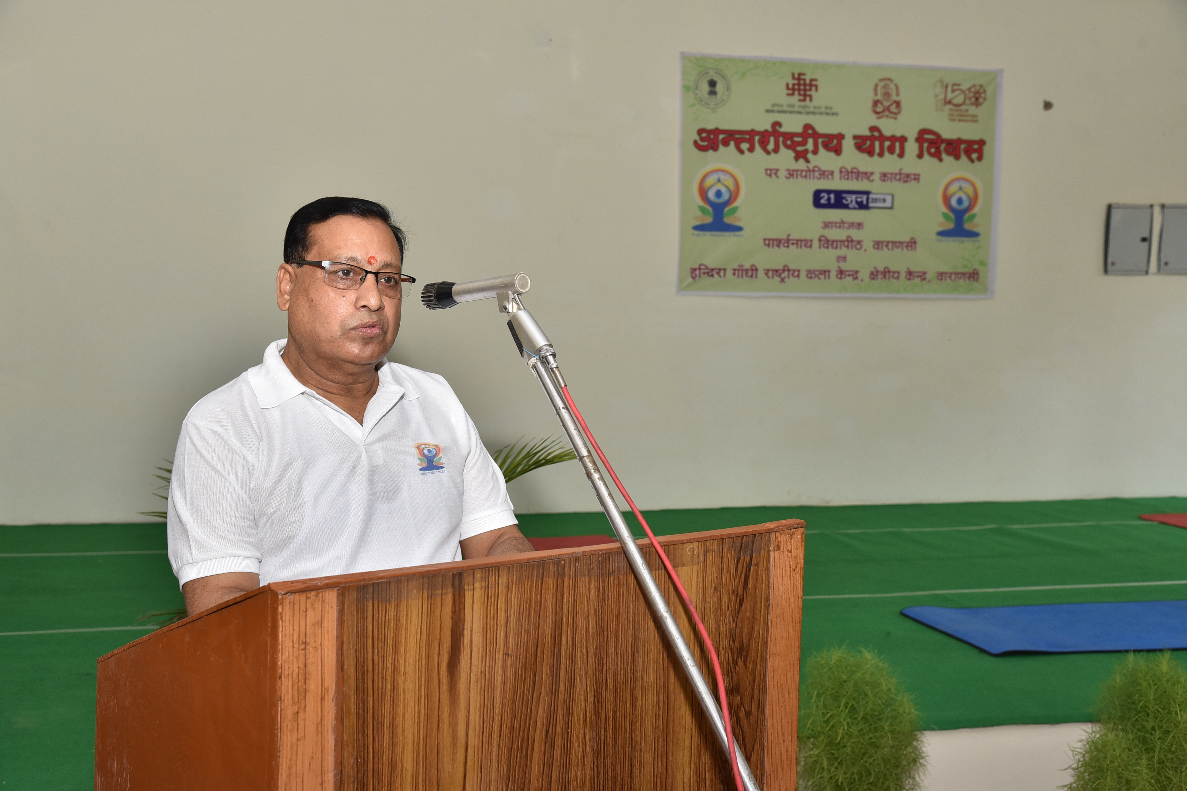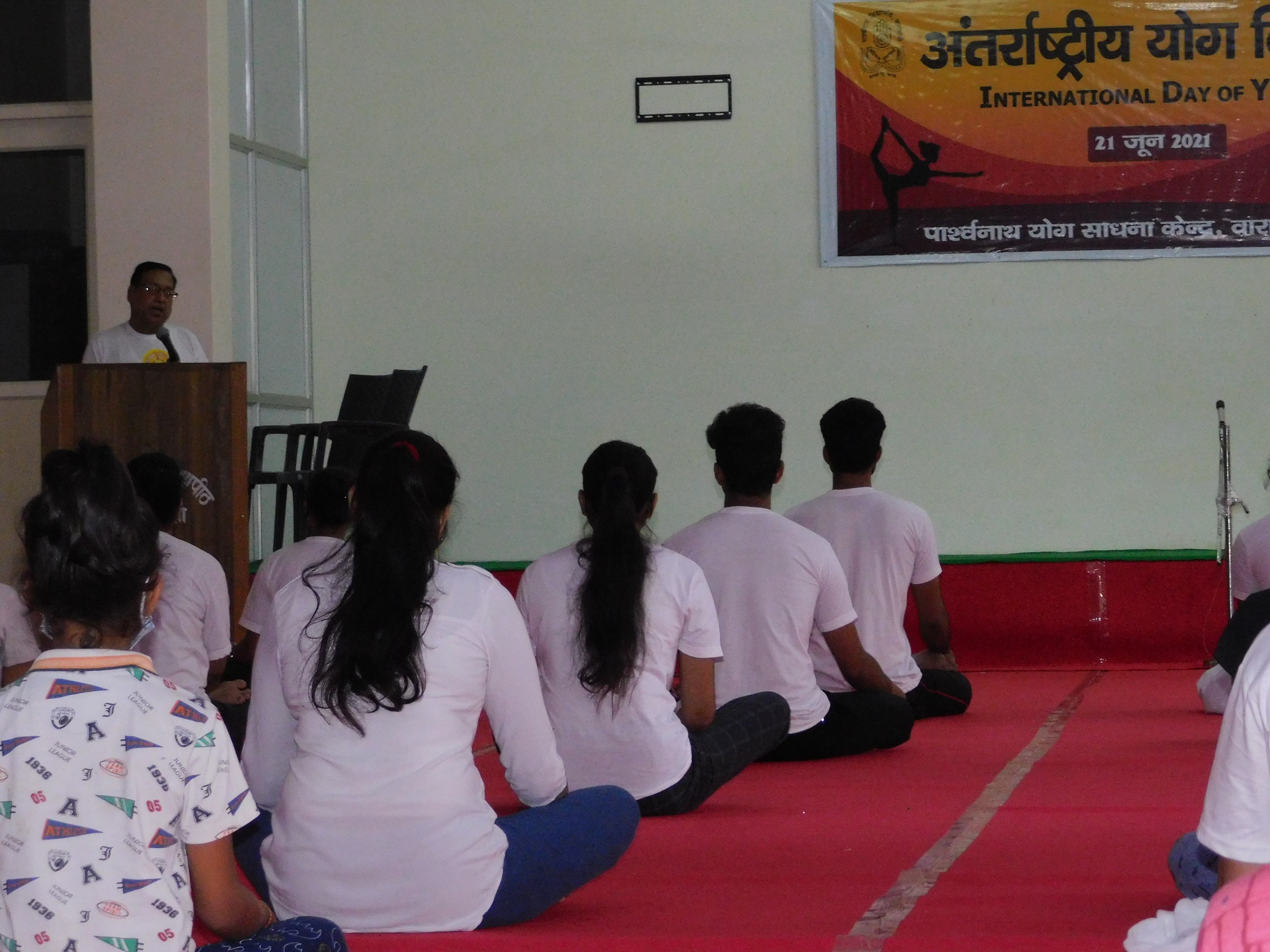 The Chief Gust was Prof. Abhimanyu Singh, Head Dept. of Physical Education, B H U, Sh. V. K. Jain, a Social Activist of Varanasi, chaired the session and Dr. V. K. Shukla, Director I G N C A was the Guest of Honor. DR. S. P. Pandey presented in short the importance of Yoga and its therapeutic use in one, s life. Sh. V K Jain expressed his happiness over the well-organized program and assured Dr. Pandey all the help to provide for the Development of Yoga Education.It is worth to mention here that Parshwanath Vidyapeeth, from the year 2018 is running a P G Diploma Course in Yoga & Meditation.