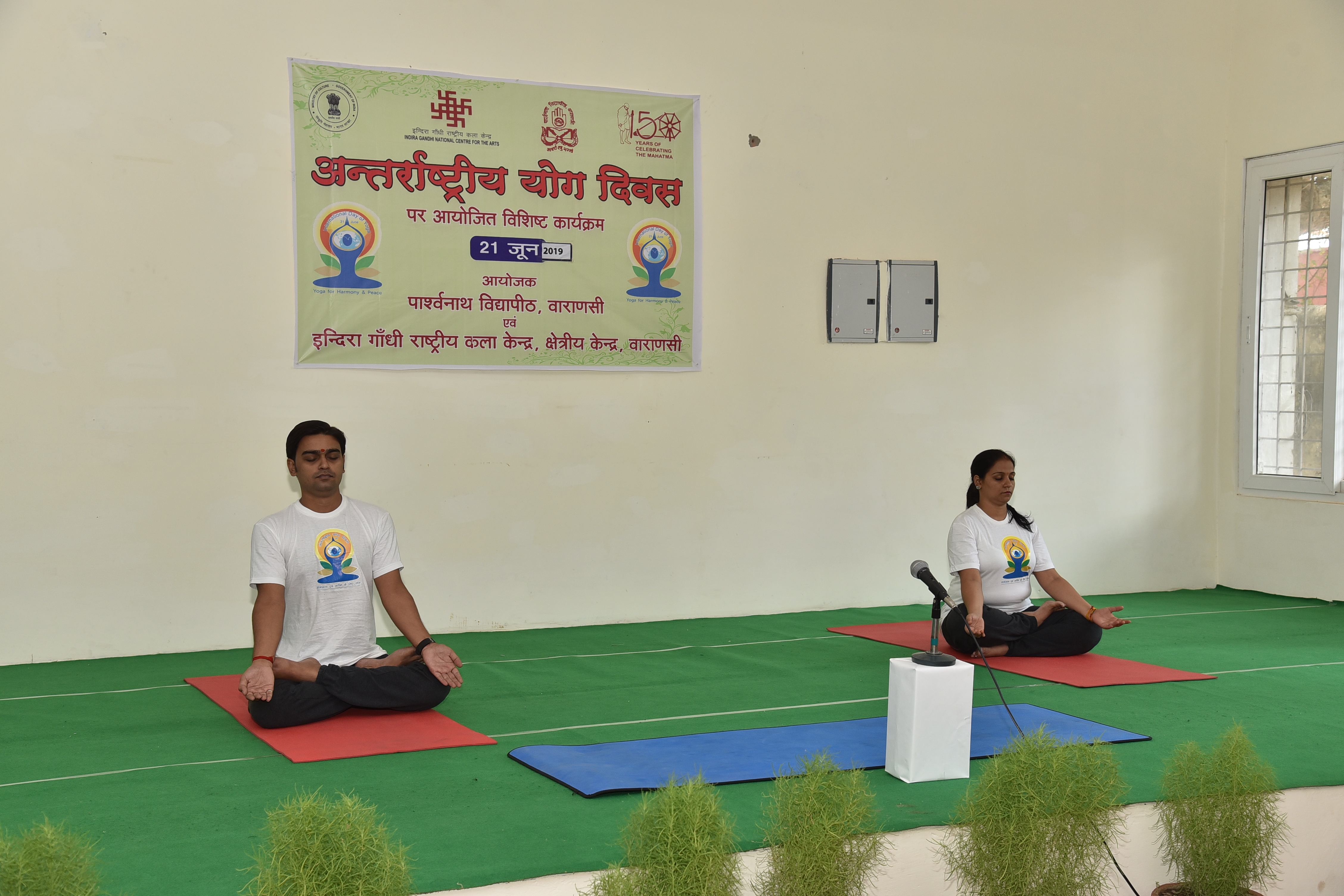 21st June, 2019, Parshwanath Vidyapeeth, Varanasi. On the eve of International Yoga Day more than 85 participants including the P G Diploma Yoga in Yoga & Meditation practiced Yoga. They did practice for many postures of Yoga as standing, sitting and sleeping as well. In last they did meditation and Pranayam also. The program was organized in collaboration of Indira Gandhi National Centre of Art, Regional Centre. Main function of International Yoga Day started with Yogic Managalacharan and Dr. S. P. Pandey, Director of the Institute welcomed the Guest.